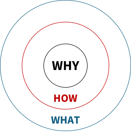 Simon Sinek’s “Why” is based on the concept of the Golden Circle, which consists of three concentric layers: